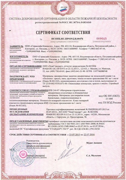 Пожарный сертификат на ламинат
