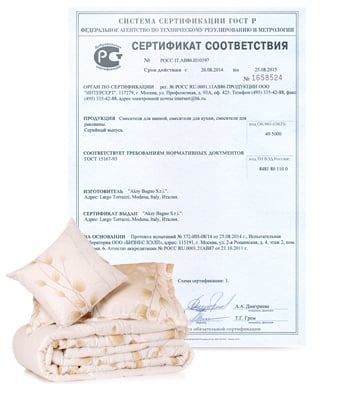Сертификат на одеяла